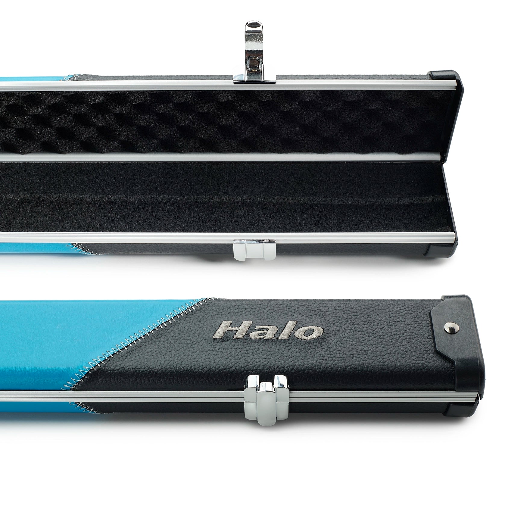 Peradon Black & Sky Blue Stripe Halo Plus 3/4 Cue Case Close Up