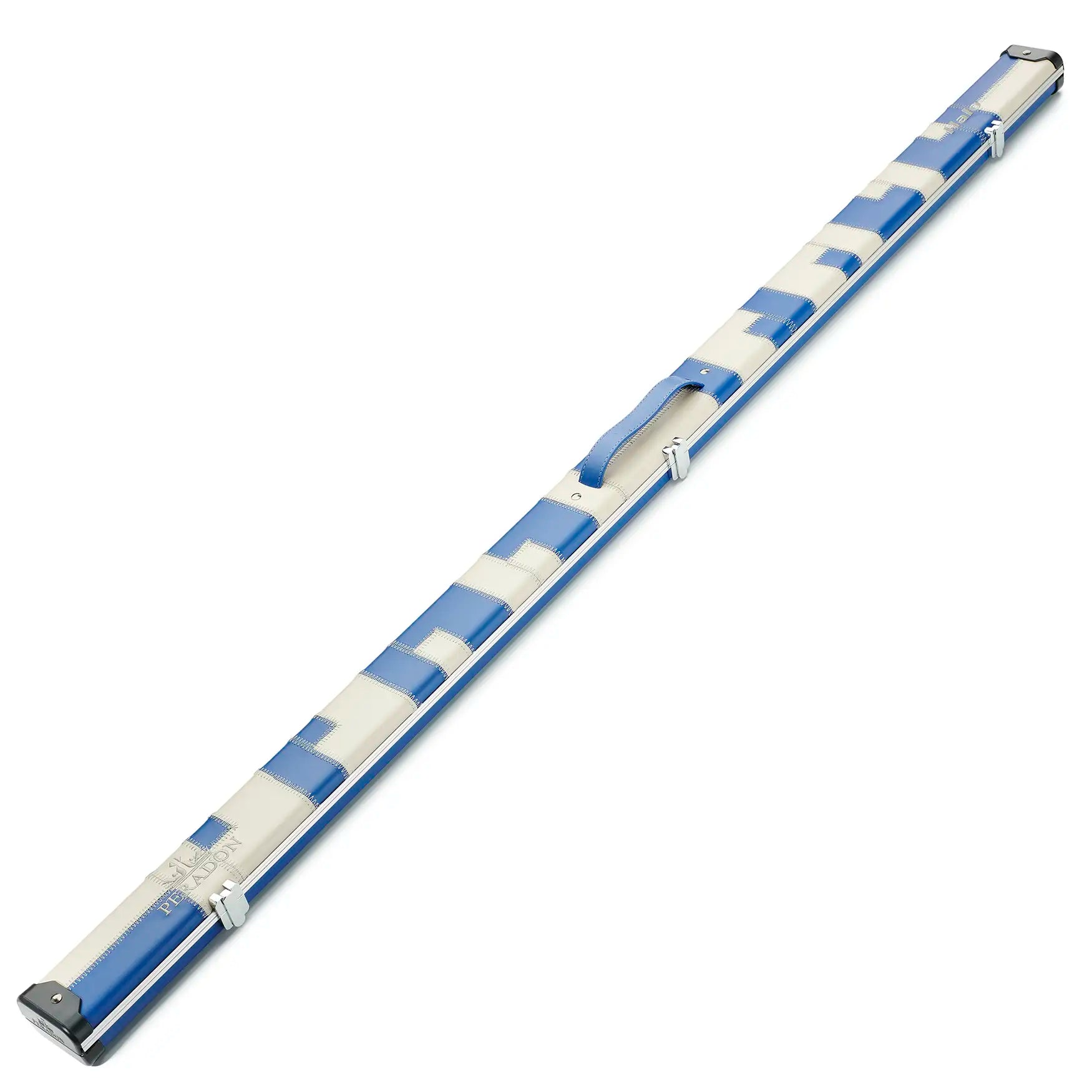 Peradon Blue & Cream Patch Halo Wide One Piece Cue Case Close Up