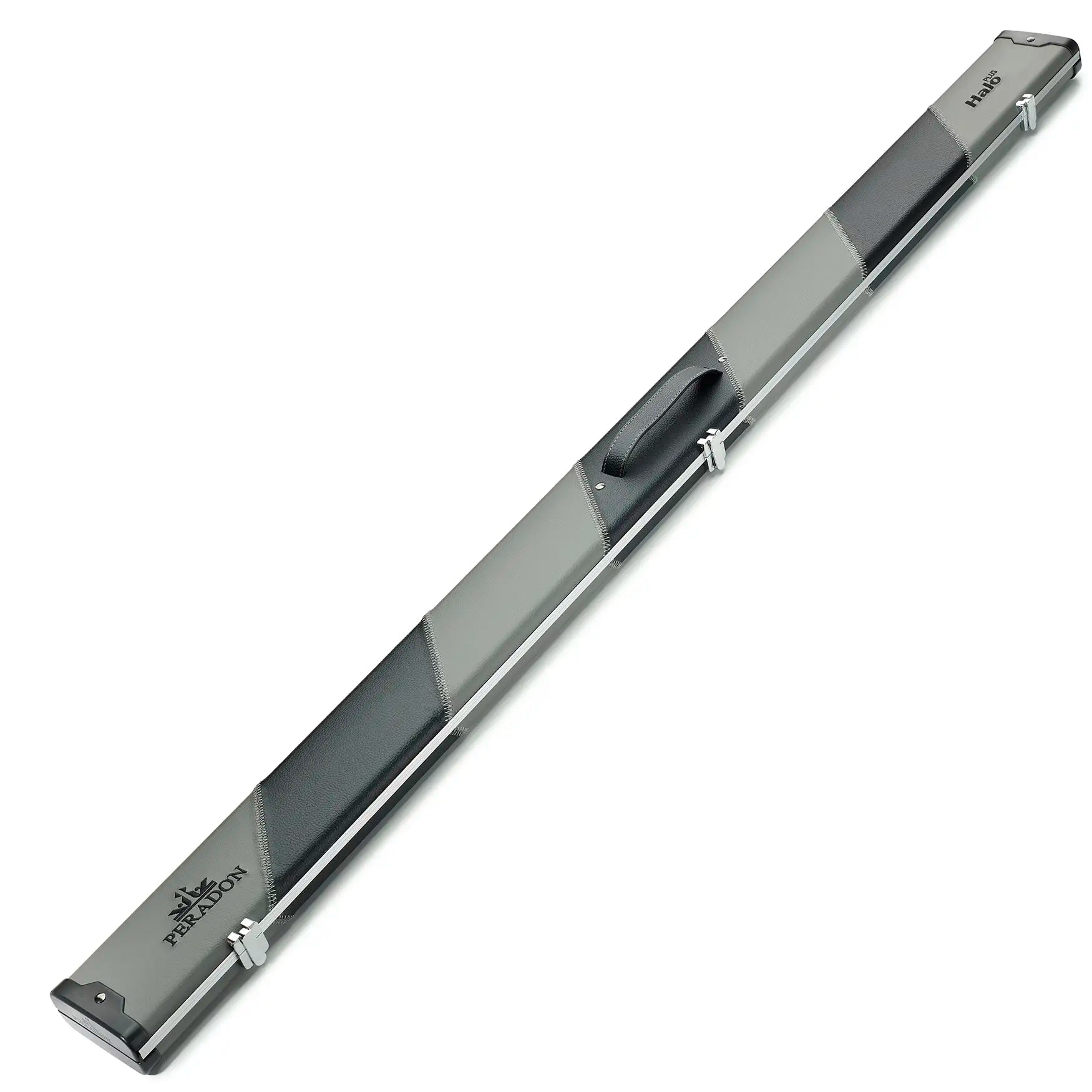 Peradon Halo 3-4 Grey Black Stripe Diagonal Close up Cue Case Closed