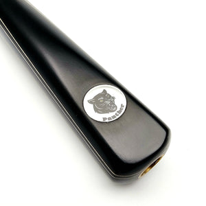The butt is finished with a Panther branded name disc and solid brass butt end joint to accept the 6" composite mini-butt extension included, allowing the player to comfortably reach those further shots.