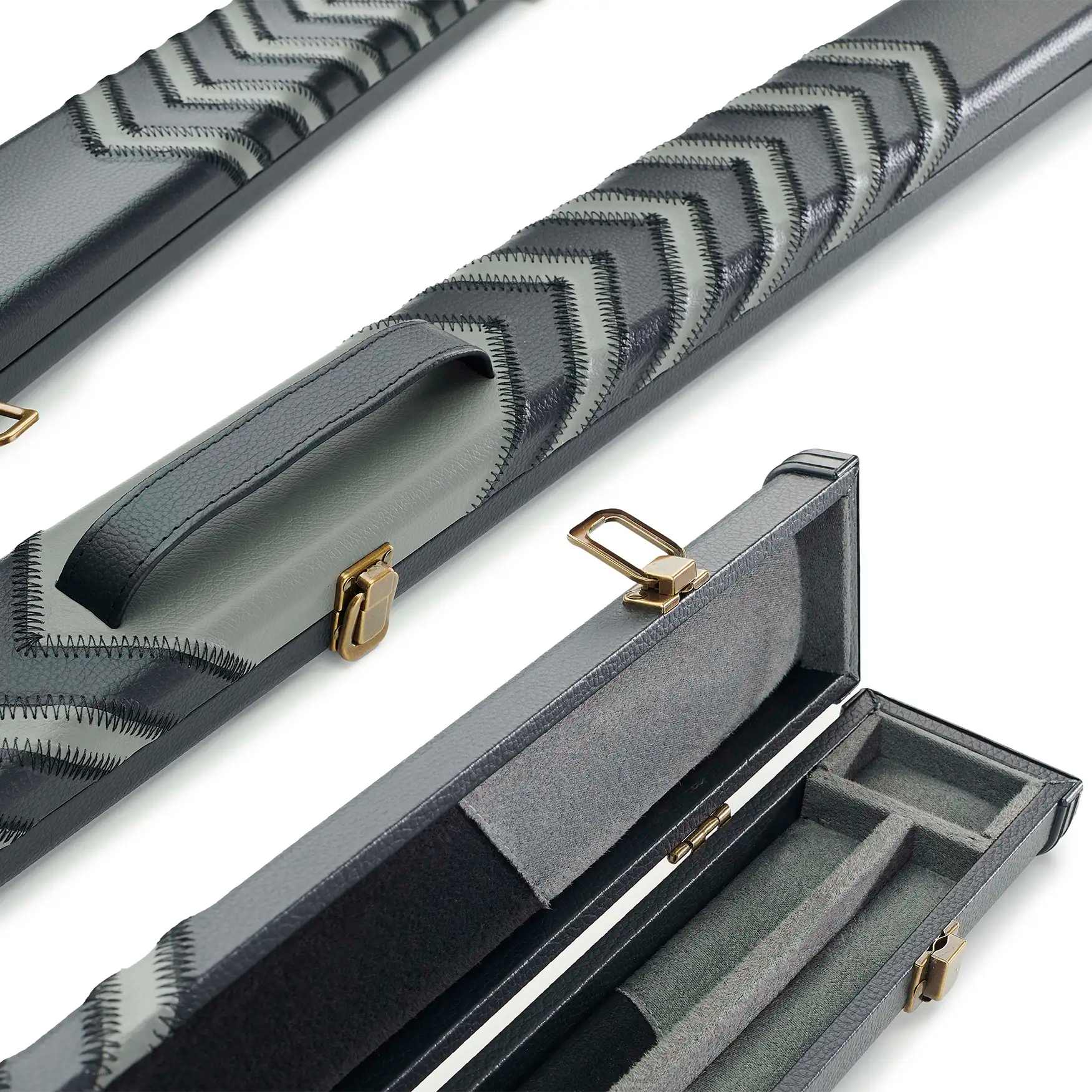 Peradon Clubman Black & Grey Arrow 3/4 Cue Case has a Black exterior with Black and Grey interior.